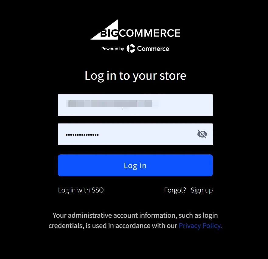 2. Log in to your BigCommerce store.