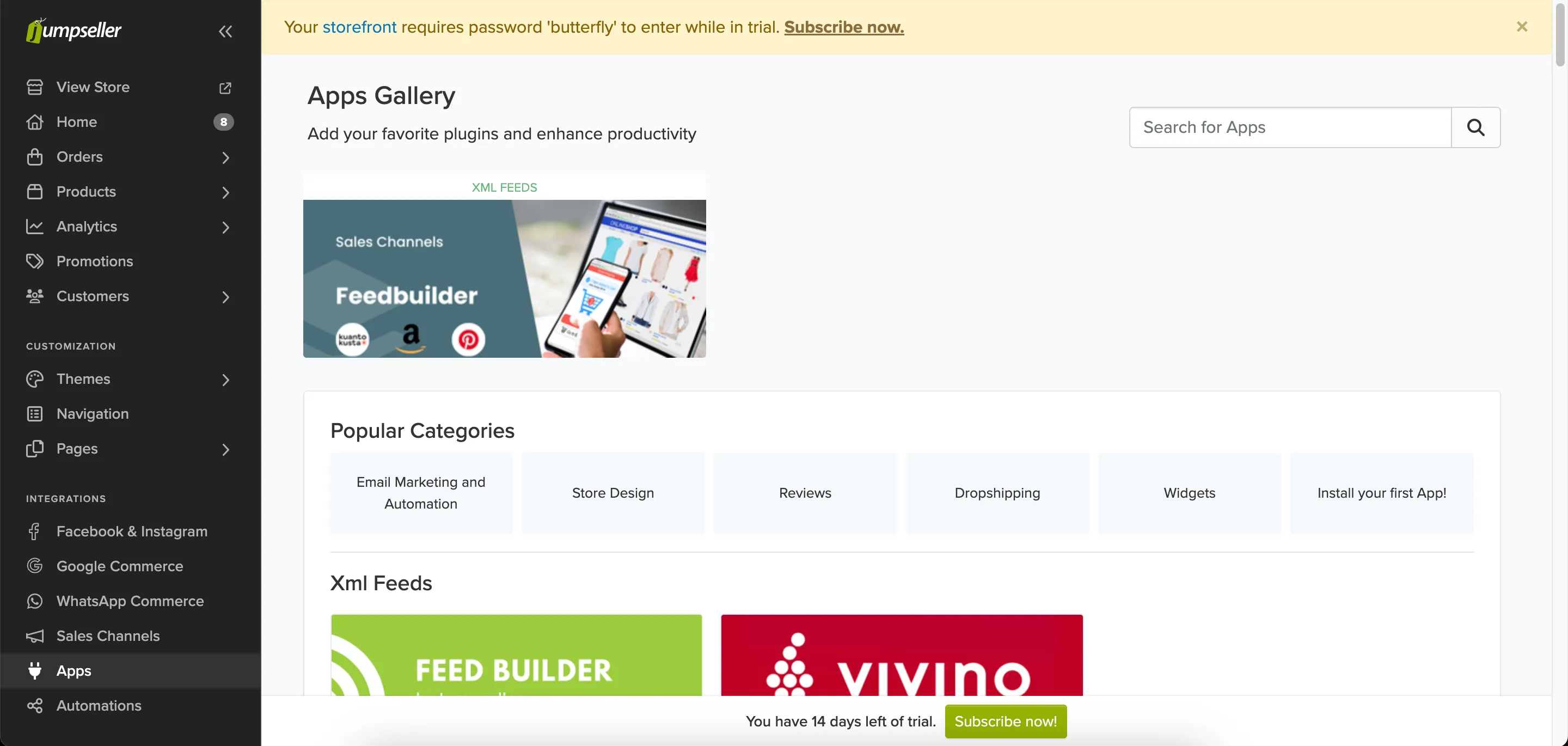 1. After signing in to your Jumpseller account, go to “Apps” on the left menu panel.
