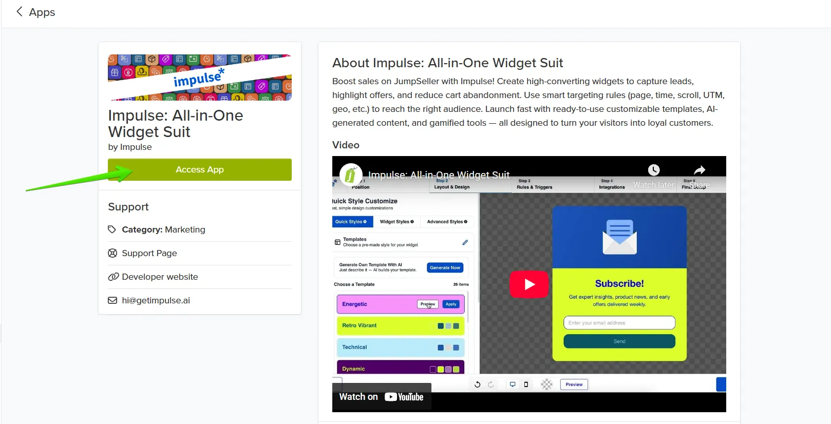 Congratulations! Your app installation is now complete, and Impulse is successfully integrated with your Jumpseller store.