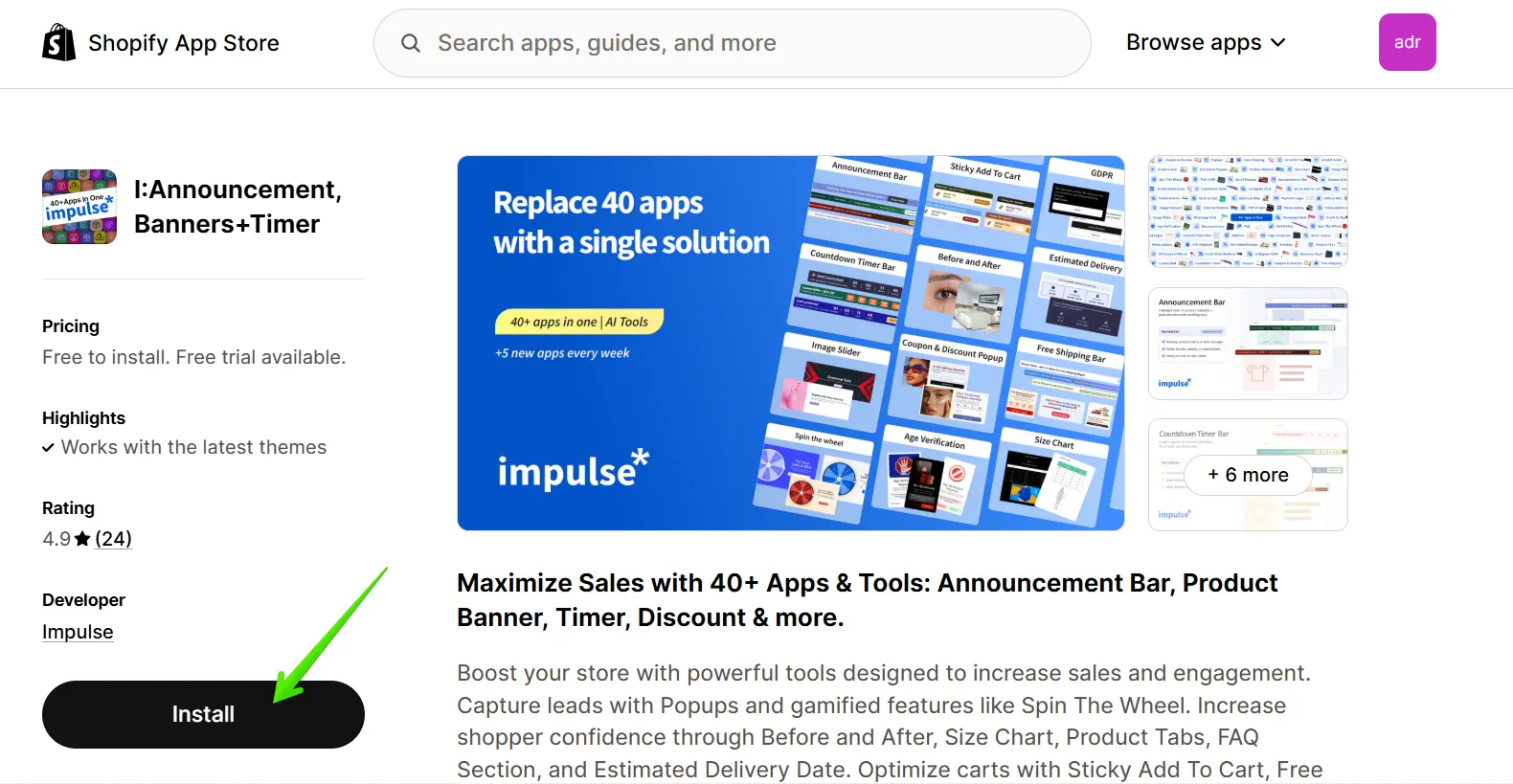 Congratulations! Your app installation is now complete, and Impulse is successfully integrated with your Shopify store.