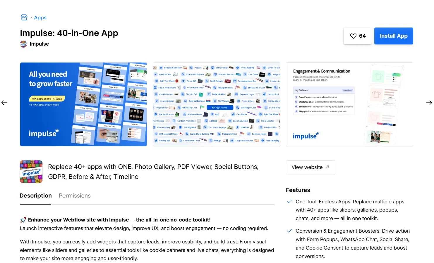 1. Begin by installing Impulse to integrate with your Webflow store.